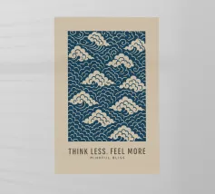 Questo poster combina un motivo di nuvole di ispirazione tradizionale con una moderna combinazione di colori corallo - morbidi, caldi e positivi. Il messaggio "Think Less. Feel More - Mindful Bliss" completa il disegno per creare un quadro d'insieme armonioso per ambienti pieni di leggerezza. Ideale per camere da letto, spazi abitativi luminosi o oasi creative che intendono irradiare gioia e consapevolezza.