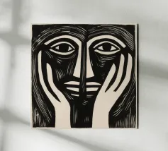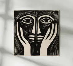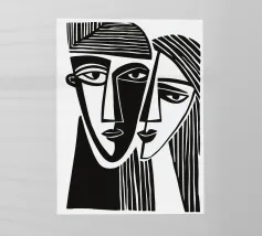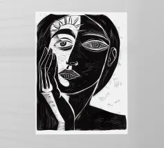 "Perplexed" mostra due volti stilizzati, simili a quelli di una xilografia, fusi in un'unità quasi simmetrica - un dialogo interiore con se stessi, un paradosso visivo tra vicinanza e separazione. Le linee decise ricordano Picasso e l'arte delle maschere africane, mentre le mani in basso sembrano portatrici silenziose di un peso interiore e di un'impotenza. L'opera gioca con l'identità, la riflessione e la dualità. Invita a interrogarsi criticamente - graficamente chiara, emotivamente complessa.