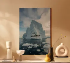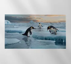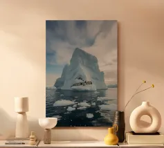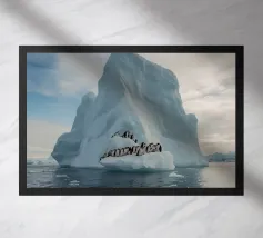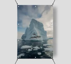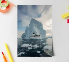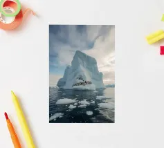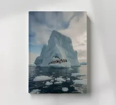 Pinguini su un iceberg in acque fredde pellicola backlit
