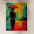 Questa affascinante composizione pop art combina l'eleganza vintage con un design grafico moderno. La misteriosa silhouette di una donna con un ombrello rosso ricorda un'estetica da film noir, mentre le audaci tonalità di turchese, arancione e rosso in stile warholiano elettrizzano l'ambiente urbano. Una decorazione da parete perfetta per gli amanti del retro chic e dell'arte contemporanea, che aggiunge un tocco artistico e drammatico a qualsiasi ambiente.