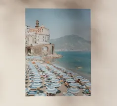 Scoprite il fascino senza tempo di Positano, in Costiera Amalfitana, attraverso questa suggestiva fotografia in bianco e nero, che cattura la vibrante energia di un'intensa giornata estiva sulla spiaggia. Il contrasto di luci e ombre mette in risalto le iconiche scogliere che definiscono questo incantevole villaggio costiero. Ogni dettaglio, dagli ombrelloni al lontano villaggio montuoso che si affaccia sulle acque, racconta una storia di estate, avventura e fascino italiano. Portate un tocco di eleganza mediterranea nel vostro spazio con questo suggestivo capolavoro monocromatico.