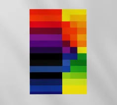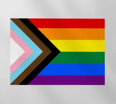 Rappresentazione suggestiva e simbolica della bandiera del Progress Pride, questo disegno fonde il tradizionale arcobaleno con l'aggiunta di strisce che rappresentano le comunità trans, nere e brune.