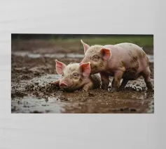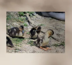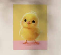 Un vivace gruppo di pulcini gialli riempie lo spazio, mettendo in mostra le loro morbide piume e le loro espressioni curiose. La luce calda esalta l'atmosfera accogliente della fattoria.