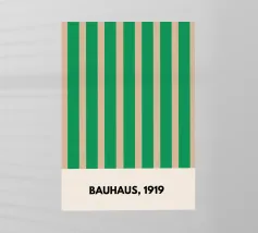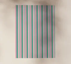 Un motivo ripetuto presenta un'alternanza di quadrati chiari e colonne a righe verdi, creando un effetto a scacchiera. Il design è minimalista e geometrico.