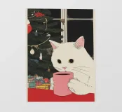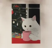 Questa bevanda nella tazza da caffè è vino caldo? Questa bevanda sembra molto invitante, ma fate in fretta o questo simpatico ed elegante gatto bianco giapponese berrà tutto il vino in un sorso, per celebrare questa accogliente notte invernale.
