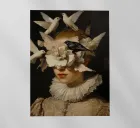 "In this enigmatic portrait, a girl with a restless gaze and a frustrated expression gets lost among thick clouds that are part of an emotional storm. Each cloud seems to carry heavy thoughts and doubts about life's mistakes and stumbles. Her face, partially hidden by this haze, reflects that feeling of being trapped in the tough moments we all face."