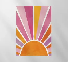 Linee radiose in morbide tonalità della terra irrompono da un semicerchio posizionato centralmente nella parte inferiore, creando un effetto a raggiera. Il design utilizza le calde tonalità del pesca, del crema e del marrone, aggiungendo un'estetica retrò.