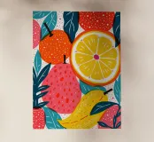 Perfetta per cucine, soggiorni o spazi creativi, questa opera aggiunge immediatamente allegria, gioia e un'atmosfera estiva.