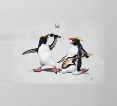 Illustrazione comica dell'interpretazione della barzelletta in bianco e nero, riguardante i pinguini e i giornali.