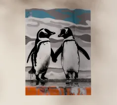 Illustrazione comica dell'interpretazione della barzelletta in bianco e nero, riguardante i pinguini e i giornali.