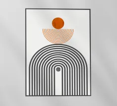 Questo design moderno combina forme geometriche minimaliste con un arancione deciso e linee delicate in nero. La struttura chiara e l'accattivante gioco di colori creano un equilibrio perfetto tra le vibrazioni retrò e l'estetica contemporanea. Ideale per murales, cuscini, tazze o cover per telefoni cellulari, questo motivo si impone con stile in soggiorni, uffici o come regalo creativo. Un must per gli amanti dell'arte minimalista e geometrica.