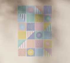 Motivo moderno di metà secolo ispirato ai pavimenti e ai murales in piastrelle di metà secolo. Linee eleganti, forme semplici, texture rumorose e palette di colori pastello.