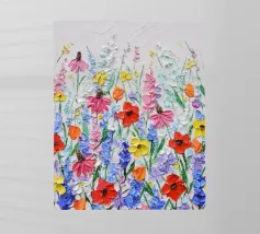 Quadro astratto e materico di petali primaverili realizzato solo con la spatola.