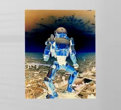 ROBOT EN SCOOTER BLEU. pellicola backlit