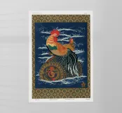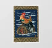 Rooster and hen on a barrel floating in the sea pellicola backlit