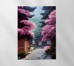Salite i gradini di pietra per raggiungere un santuario di fiori di sakura, dove un antico santuario si erge in mezzo alla foresta, abbracciato dal bagliore del sole.