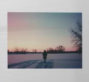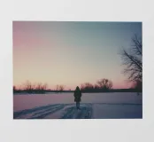 sagoma di una ragazza in piedi in un campo di neve pellicola backlit