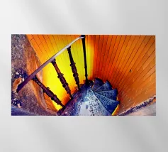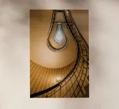 Questa bella scala a chiocciola di Praga sembra salire a spirale verso il cielo. La scala ha un look retrò chic che funziona bene come poster o su altri materiali stampati, come la tazza del caffè o il taccuino.