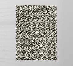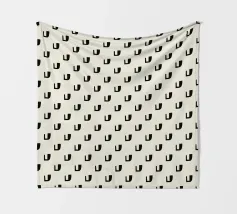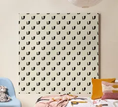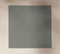 Un motivo ripetuto presenta forme geometriche nere su uno sfondo grigio chiaro, creando un design ritmico e visivamente accattivante. Le forme sono uniformemente distanziate e contribuiscono a creare un senso di ordine ed equilibrio.