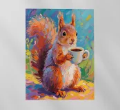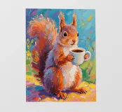 Scoiattolo che tiene una tazza di caffè con pittura fauvismo stile arte