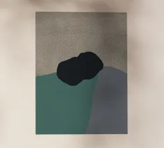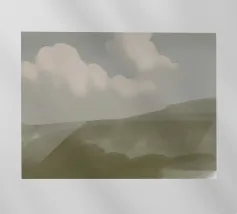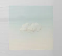 Una forma vaga che assomiglia a una silhouette si staglia su uno sfondo tenue, dando l'impressione di un'ombra o di una figura spettrale. I colori sono tenui e i contorni non sono netti, il che conferisce alla scena un carattere mistico o etereo.