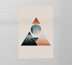 Questa composizione geometrica esplora la semplicità e la stratificazione. I triangoli sovrapposti formano un design pulito e senza tempo che si adatta perfettamente a spazi minimalisti, boho o contemporanei.