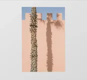 Palma a Marrakesh. Ombra di una palma botanica su un muro rosa. Cielo blu in Marocco.