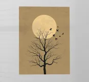 Scoprite la bellezza ammaliante di "Moonlight Tree with Birds", una stampa digitale minimalista che cattura la serena quiete di una notte di luna. Questo pezzo accattivante presenta una grandiosa luna piena giallo pallido, che proietta la sua luce eterea dietro l'intricata silhouette di un maestoso albero senza foglie. Perfetto per le case contemporanee, per le camere da letto serene o per qualsiasi spazio che cerchi una dichiarazione calma, contemplativa e artistica. Elevate il vostro arredamento con questa miscela unica di semplicità grafica e meraviglia naturale.