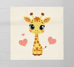 Portate a casa un tocco di tenerezza e calore con questo adorabile disegno! Un'affascinante giraffa abbraccia amorevolmente un cuscino a forma di cuore su una soffice nuvola, il tutto circondato dalle vibranti tonalità dell'arcobaleno. Questo disegno giocoso e pieno d'amore è perfetto per aggiungere un'atmosfera allegra a qualsiasi stanza, rendendolo un compagno delizioso per i momenti di intimità o come pezzo decorativo accattivante.