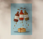 Simpatiche bottiglie che versano sciroppo sui pancake pellicola backlit