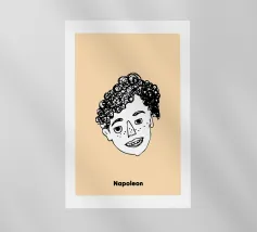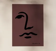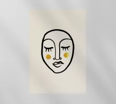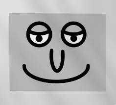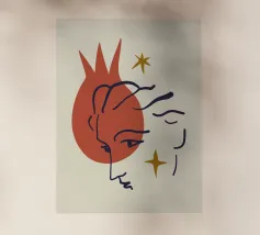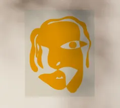 Un volto semplicistico e astratto è disegnato con linee nere decise e presenta una stella gialla sulla fronte. L'espressione è minimale, con piccoli punti per gli occhi e una linea retta per la bocca.