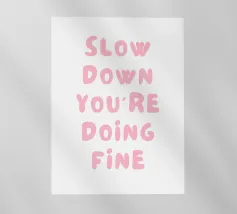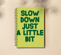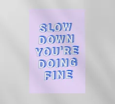 Il testo verde in grassetto su uno sfondo verde più chiaro incoraggia a prendere le cose con più calma. Il messaggio è diretto e sottolinea l'importanza di rallentare il ritmo.