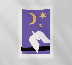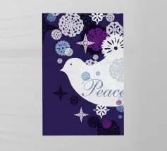 Un poster per le buie giornate invernali e per il Natale, con colombe di pace nel cielo stellato notturno, che trasmette il messaggio natalizio per eccellenza: liberarsi e portare la pace.