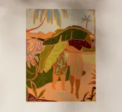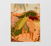 Due donne camminano a braccetto sotto il riparo di ampie foglie di banano, la loro vicinanza offre ombra e conforto. Con la loro presenza silenziosa, la vita sembra piรน morbida, le preoccupazioni si attenuano e l'unione diventa il suo dolce rifugio.