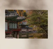 Stagno del giardino segreto di Huwon a Seul, Corea del Sud pellicola backlit