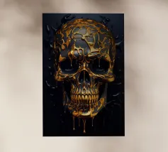 Un'immagine cupa e riccamente decorata mostra un teschio centrale incorniciato in uno stendardo decorato con ornamenti gotici. La combinazione di colori nero e beige e l'alto livello di dettaglio conferiscono al motivo un effetto imponente, quasi di soggezione. Ideale per gli appassionati di arte oscura, heavy metal o simboli occulti. Quest'opera è ideale per attirare l'attenzione con un'estetica dark, sia in una sala da musica che in uno studio o come dichiarazione stilistica per gli amanti delle forme d'arte morbose.