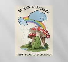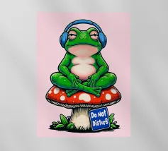 A vivid and whimsical scene featuring a bright pink frog sitting atop a red toadstool with white spots, surrounded by lush foliage and glowing flowers in a misty, enchanted forest. The magical ambiance enhances the surreal beauty.