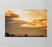 Ho scattato questa foto in una frizzante mattina d'autunno con vista su Dresda. Ho aspettato a lungo finché il sole non è apparso. Fortunatamente per me, uno stormo di uccelli ha attraversato il paesaggio proprio nel momento giusto. :)