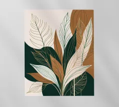 Questo studio botanico sereno ed elegante mostra varie foglie e rami verdi su uno sfondo neutro e colorato. La sua composizione pulita ed equilibrata è perfetta per creare un'atmosfera rilassante e naturale, celebrando la semplice bellezza del fogliame.