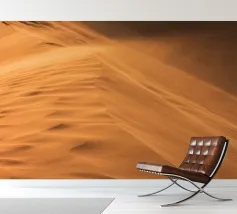 Tramonto nel deserto. Il vento soffia la sabbia tra le dune. Duna di sabbia dorata nel deserto del Sahara in Algeria.