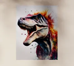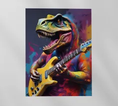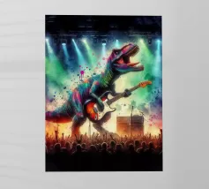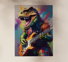 Questo vibrante T-Rex sfoggia un paio di eleganti occhiali da sole, che fondono la forza preistorica con la modernità. Un pezzo audace e divertente per gli amanti dei dinosauri e dell'arte tagliente.