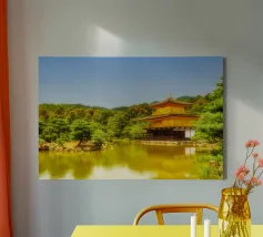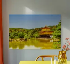 Trasformate la vostra stanza con un tocco di tranquillità ed eleganza. Questa splendida foto dell'iconico tempio Kinkaku-ji in Giappone porta un paesaggio sereno nella vostra casa. Con i suoi verdi vibranti e il riflesso dorato che brilla sull'acqua, è perfetta per chi desidera creare un ambiente tranquillo. Lasciate che la bellezza dell'architettura e della natura giapponese ispiri relax e consapevolezza in qualsiasi spazio. Ideale per aggiungere fascino culturale e un'atmosfera rilassante al vostro arredamento.