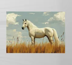 Sperimentate la pura magia di una creatura leggendaria con questo splendido ritratto di unicorno. Catturato in uno stile artistico senza tempo, il maestoso unicorno bianco si erge con grazia e potenza. Lo sfondo minimalista e strutturato esalta la sua bellezza eterea, rendendolo un pezzo sofisticato e incantevole per un interno classico o moderno, per la stanza di un bambino o per qualsiasi spazio che abbia bisogno di un po' di meraviglia.
