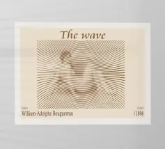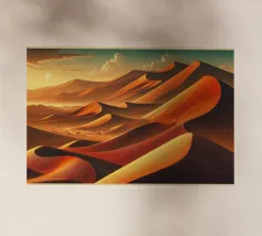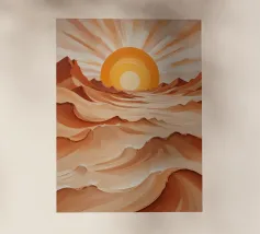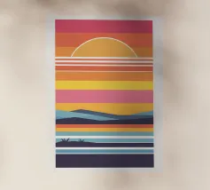 Disegno di viaggio minimalista e decorativo con "The Wave", la colorata formazione rocciosa sulle pendici del Coyote Buttes in Arizona, USA. Un disegno per le vacanze estive per tutti coloro che amano andare in vacanza nei parchi nazionali degli Stati Uniti e trovano bella questa natura e il paesaggio rossastro.