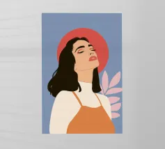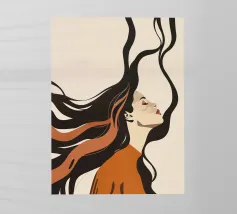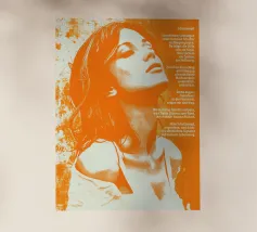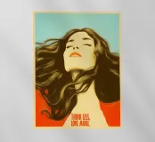 Quest'opera seduce attraverso l'emozione e lo stile: l'artista presenta un ritratto femminile con un emozionante look retrò, che ricorda l'estetica illustrativa degli anni '60 e '70, in particolare i manifesti psichedelici. Il volto della donna, inclinato e incorniciato da una folta chioma di capelli castani, emana un'intensa emozione ed estasi. La scelta dei colori - rosso intenso, giallo oro e blu pastello - è sensuale e drammatica. La tipografia chiara e decisa in basso trasforma l'immagine in un messaggio potente e senza tempo. Una dichiarazione iconica ad alta risonanza emotiva.