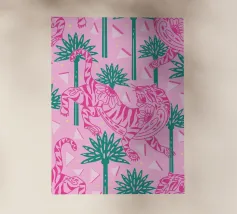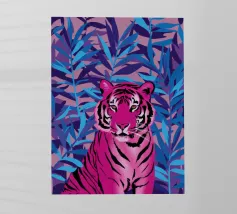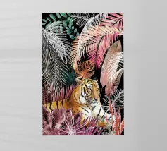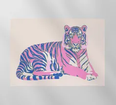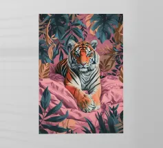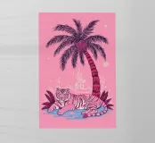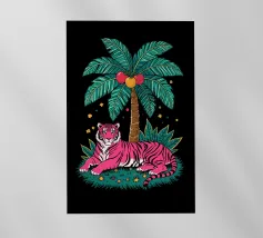 Tigre sotto una palma con combinazione di colori rosa pellicola backlit