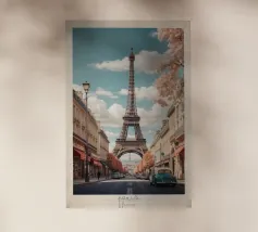 Portate un tocco di magia parigina nella vostra casa con "Golden Paris Glow", una splendida stampa fotografica che immortala la Torre Eiffel che si erge con grazia tra le classiche strade parigine. Inondata di calde tonalità dorate e rosate, quest'opera d'arte fonde romanticismo e stile moderno, perfetta per chiunque sogni di passeggiare nella Città delle Luci.