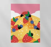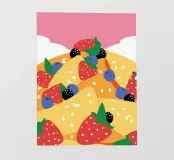 Illustrazione di una torta con guarnizioni di fragole, mirtilli e more.
