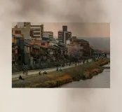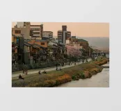 Tramonto sul fiume Kamo a Kyoto pellicola backlit
