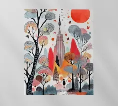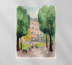 Stampa di un disegno originale di Plaça de la Virreina nel quartiere Gràcia di Barcellona.